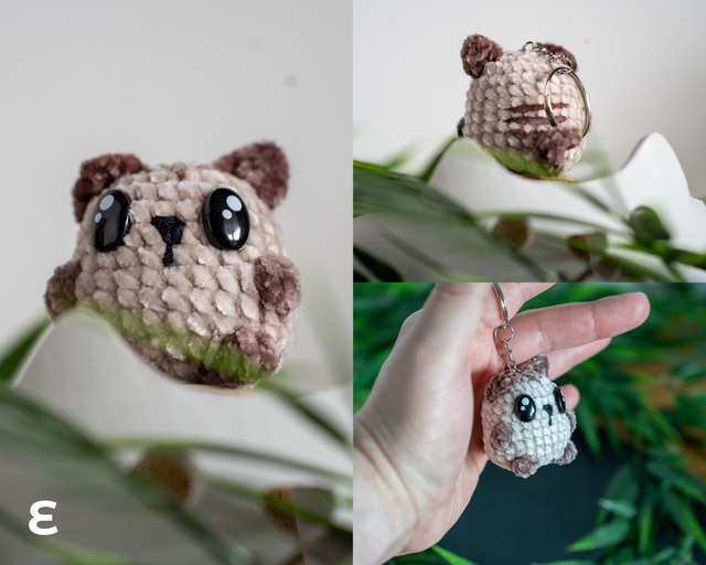 - Made with chenille yarn, safety eyes, polyfill and a keyring