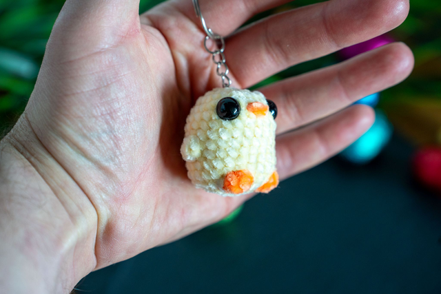 - Made with chenille yarn, safety eyes, polyfill and a keyring