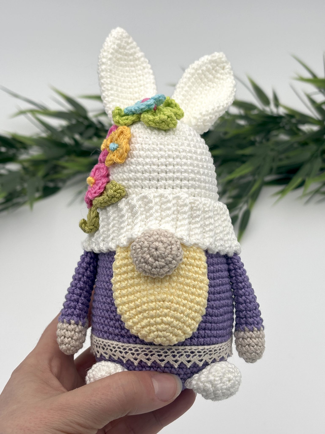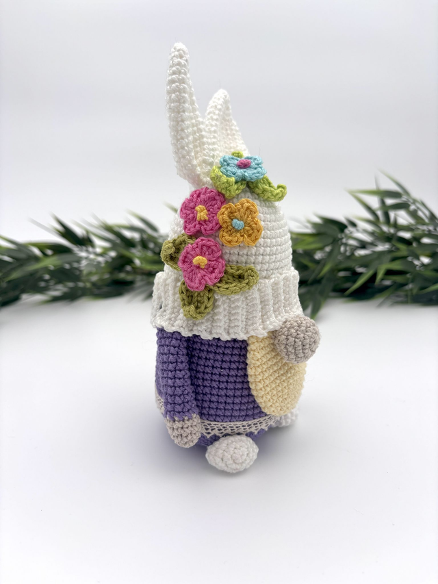 Hop into spring with this charming floral gnomes! Dressed in soft pastels and each wearing an adorable bunny-eared hat, they show off lovely braids or fluffy beard.