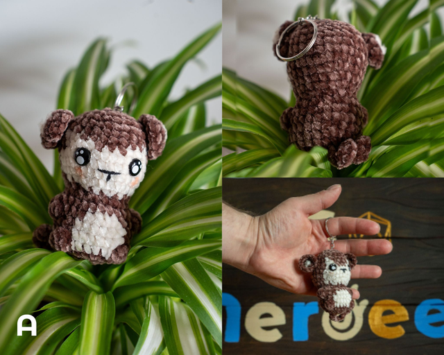 - Made with chenille yarn, safety eyes, polyfill and a keyring
