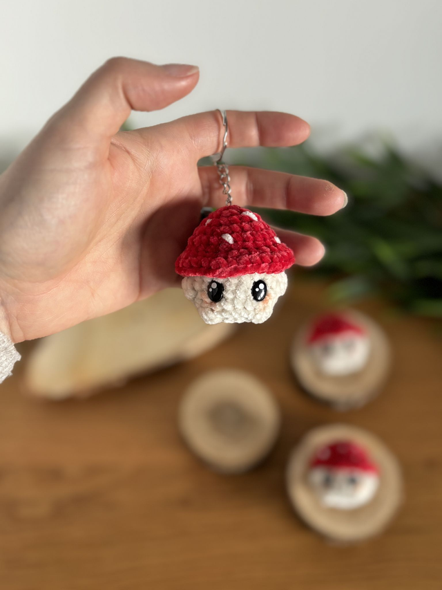 - Made with chenille yarn, safety eyes, polyfill and a keyring