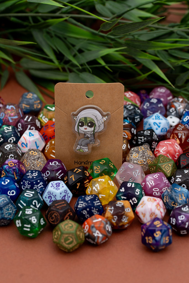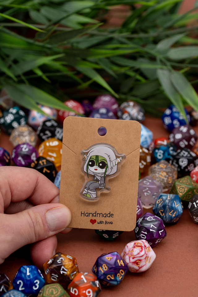 The pin showcase Nott the Brave, iconic member of the Mighty Nein, reimagined in a colourful chibi style. It is perfect to personalize bag, clothing or pouch and add a touch of Exandria to your daily life !