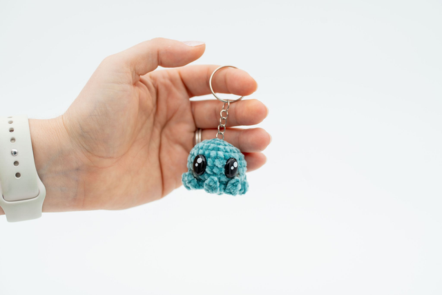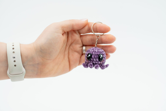 - Made with chenille yarn, safety eyes, polyfill and a keyring