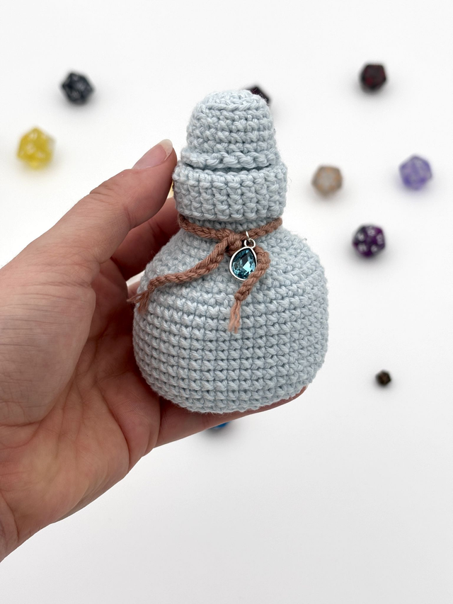 Add a touch of magic to your game table with these crochet potion dice bags, perfect for role-playing enthusiasts!