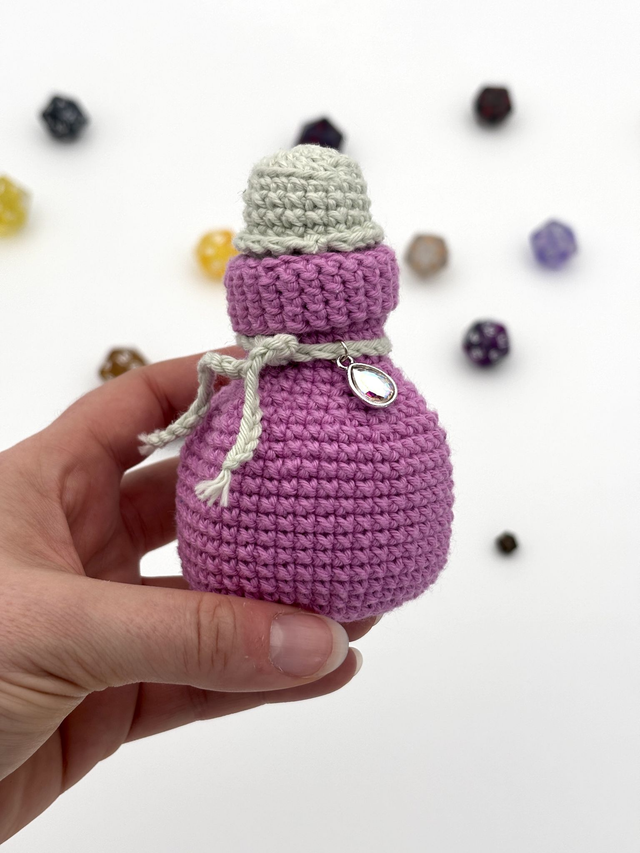 Add a touch of magic to your game table with these crochet potion dice bags, perfect for role-playing enthusiasts!