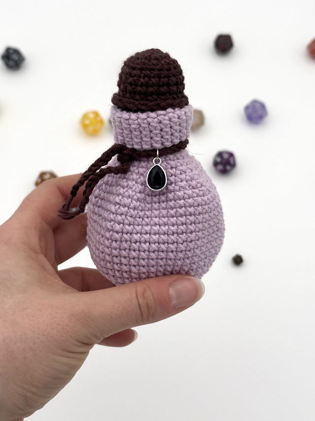 Add a touch of magic to your game table with these crochet potion dice bags, perfect for role-playing enthusiasts!