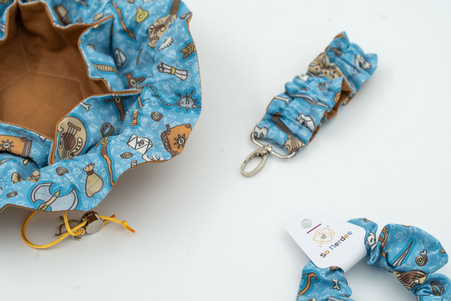 Level up your style with these handmade TTRPG-inspired fabric scrunchies! Crafted from soft cotton with charming tabletop gaming patterns, they can be worn in your hair or around your wrist as a cute and geeky accessory.