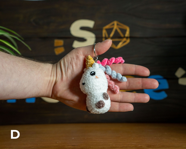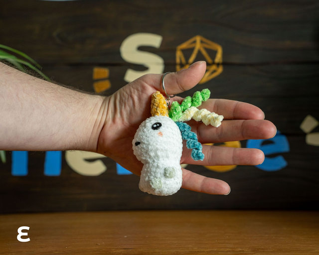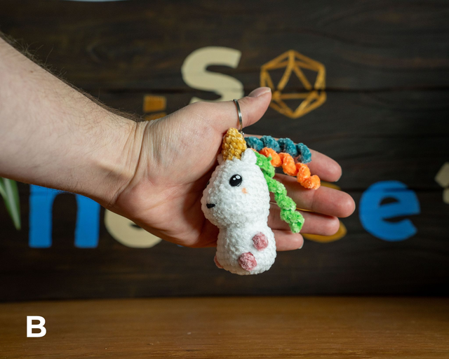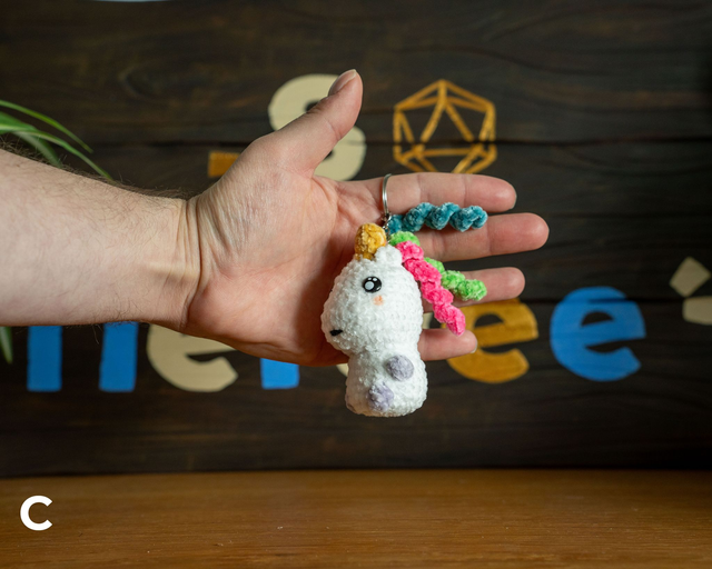 - Made with chenille yarn, safety eyes, polyfill and a keyring