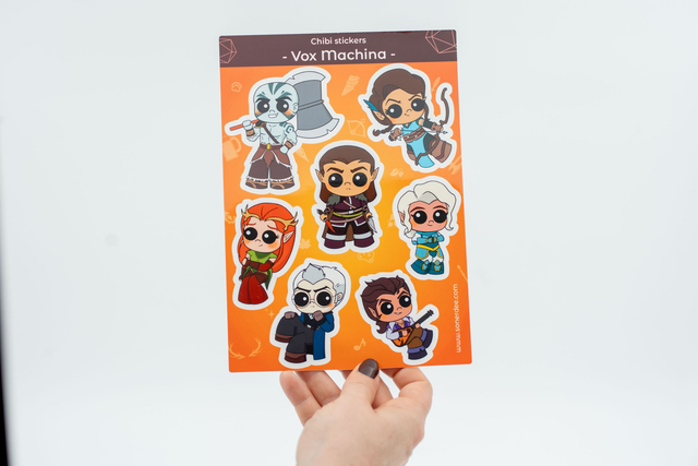 Bring the legendary heroes of Vox Machina to life with this adorable chibi-style sticker sheet! Each character has been lovingly illustrated with playful details and big personality—perfect for decorating journals, laptops, dice boxes or anything that needs a little critter charm.